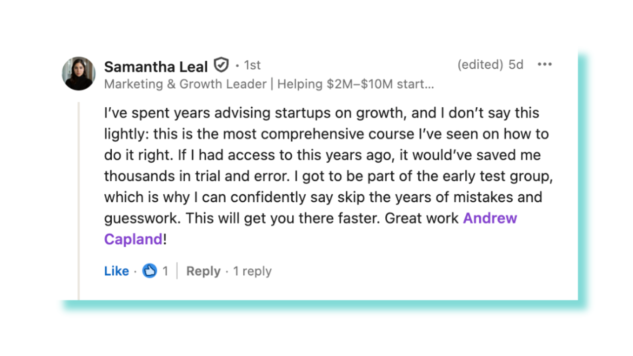 Most new growth leads get stuck chasing random tactics. This module shows you how to define a clear, high-impact growth strategy - so you can walk into every exec meeting confident, aligned, and in control of the narrative.